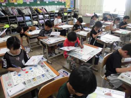 図画工作の時間に初めて絵の具を使いました。準備から片付けまで初めてのことばかりでしたが、しっかり話を聞いて楽しく学習できました。