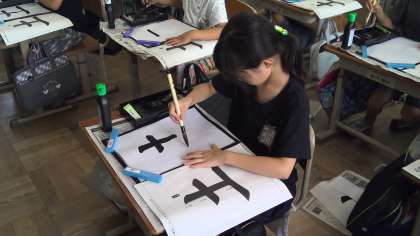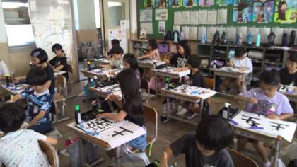 今日は、縦画と横画を組み合わせた「土」を毛筆で書きました。始筆の「しずくの形」や、終筆の「とめ」の書き方など、習ったことを確かめながら練習しました。最後は2枚清書して、上手な方を廊下に掲示します。個人懇談会の際にぜひ見て下さい。