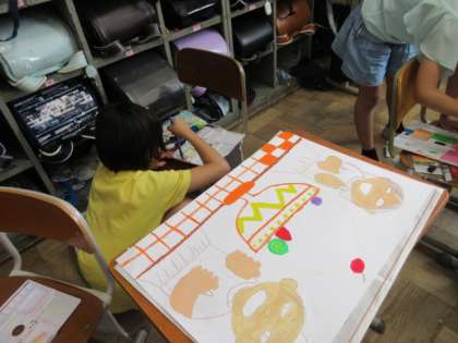 夏にぴったりの絵画作品に取り組んでいます。今週は、絵の具で彩色して、完成に近づいてきました。来週はいよいよ仕上げをします。みんなは何味のかき氷を描くのかな。楽しみです。