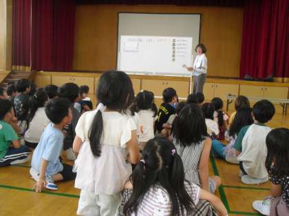 先日、なかよし学級のみんなと一緒に遊びで交流しました。みんなで手をつないだり、貨物列車をしたり、クイズをしたり。クラスの友だちもたくさん増えたけど、なかよし学級の友だちも増えて、とっても楽しい一日でした。