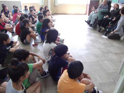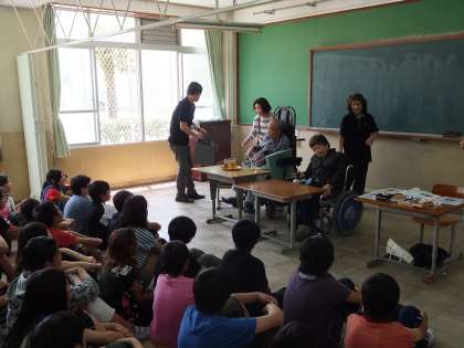 総合的な学習「共に生きる」今回は.岩本夫妻を講師に迎え,お話をしていただきました。