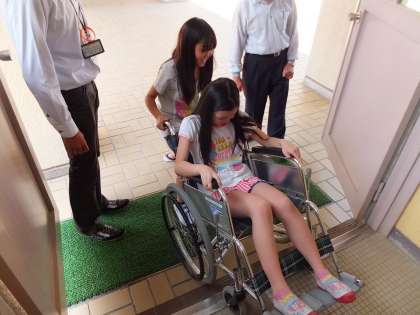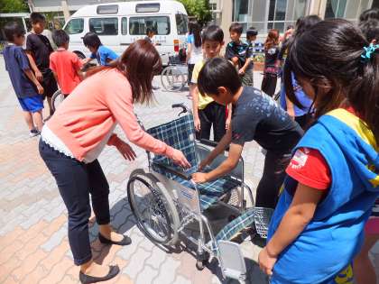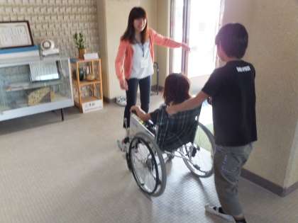 初めての経験でしたが,子どもたちは一生懸命車いすを押していました。
