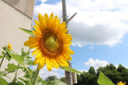 3年生が理科の学習で育てている向日葵がやっと咲きました。