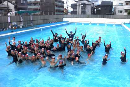 今日は、水泳学習の最終日でした。検定では、自分の決めた目標をクリアできるように、一生懸命がんばるみんなの姿が素敵でした。記録を伸ばせた人もたくさんいました。よくがんばりました!最後にみんなで集合写真を撮りました。