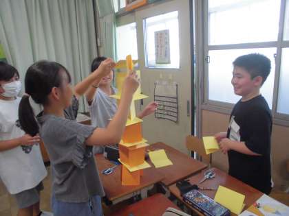 夏休みの思い出や自由研究についてたくさん話をしたり、みんなでゲームを楽しんだりしています。
