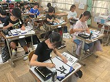 初めに書いてみて、難しいなと感じたところや、どこをポイントとすればいいか考えたところなどを交流し、筆順や字形のバランスに気をつけながら書くことを目標に練習をはじめました!