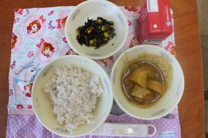 今日は「チキンカレー」「ひじきのソテー」でした。