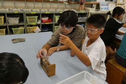 6年生になり、薬品を使う頻度が増えてきましたが、児童は保護メガネをかけるなどルールをしっかり守って実験を行っていました。