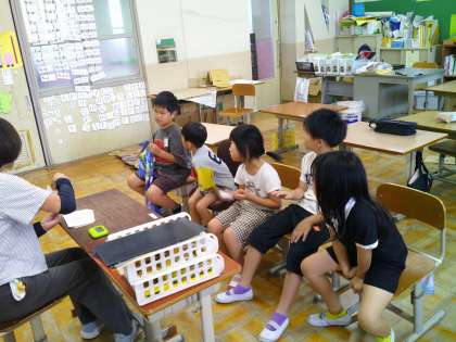 算数の時間の様子です。久しぶりに、みんなで算数カードをしました。記録は、1回目が38秒、2回目が33秒。5秒も早くなりました!