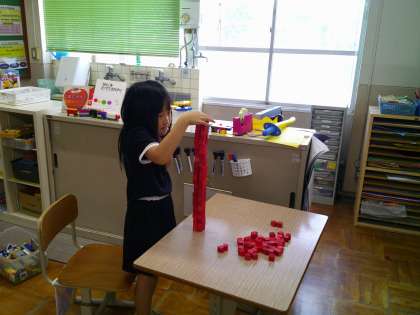 最後は、積み木タワー!随分高く積めるようになりました。