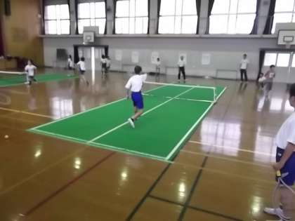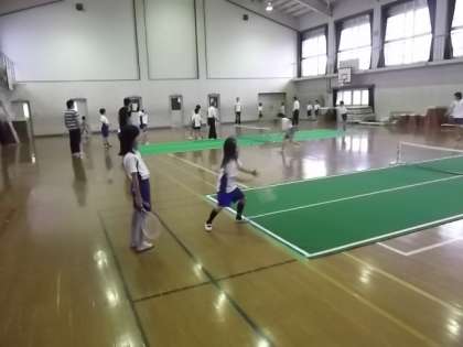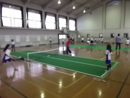 本日,2回目のバウンドテニス教室が行われました。25名の児童が参加し,2時間しっかり活動しました。1回目から参加している子は,かなりコツをつかんできたようで,相手コートにボールを返せるようになってきました。