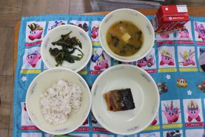 今日は「さばのつけ焼き」「ほうれん草のごま煮」「みそ汁」でした。