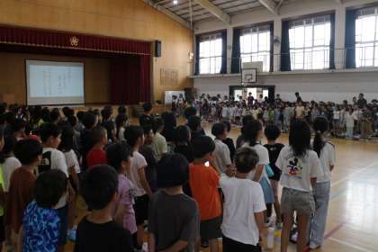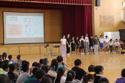 その後は、本部委員会より月目標の発表や、夏休み中に参加した、みやこキッズ会議の報告をしました。