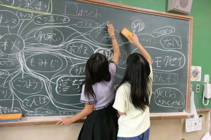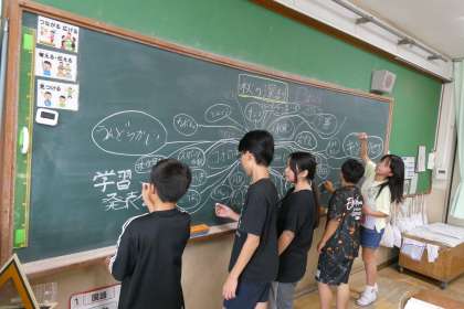 「秋」といえば、どのようなことを思い浮かべるか個々で考え、黒板に書きました。