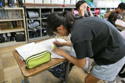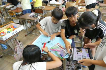 にこにこタイムでのグループで準備を進めてきましたが、最後の仕上げを6年生が行いました。6年生児童からは、「一年生のためにふりがなをふろう。」「みんな楽しんでくれるかな。」という相手意識をもった声が多く聞かれ、リーダーとしての自覚が言葉からも伝わります。