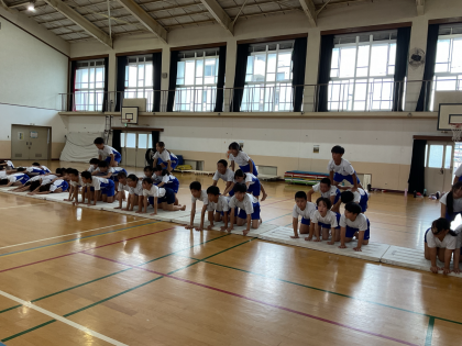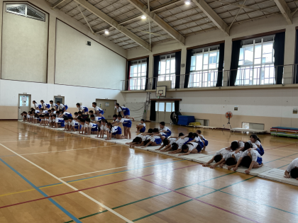 今日は、運動会に向けて初めて学年体育を行いました。