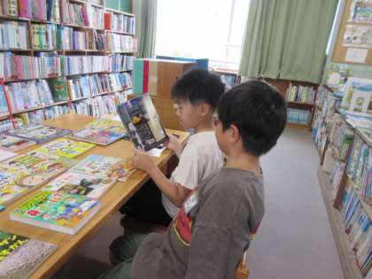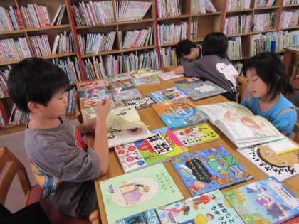 1学期にみんなが選書会で選んで注文した本が届き、今日はそのお披露目会でした。子ども達は、たくさん並んだ本の中から、自分のお気に入りを見つけておもいおもいに読んでいました。今日は、机の上に本がたくさん並んでいるので、床で読んでもOKでしたので、床に座ってじっくり読んでいる子もいました。