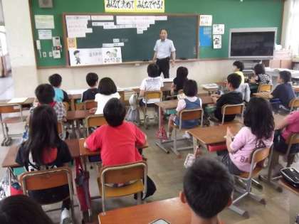 本日,西京署からスクールサポーターの方にお越しいただき,標記の教室を開催しました。様々な非行事例を挙げて説明していただきました。非行行為が自分を不幸にするだけでなく,関わりのある様々な人たちを不幸にするということを聞いて,子どもたちは正義感をもって正しく判断し,自分で心にしっかりブレーキをかけて行動することの大切さを感じることができました。