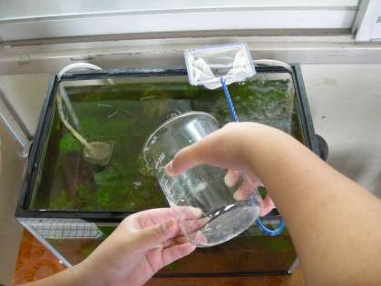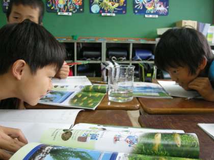 メダカのたんじょうという単元で,メダカを観察しました。オスとメスの見分け方や,メダカの住みやすい環境について話し合いました。