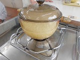 今回は、ガラスのお鍋を使い、水やお米の動きや湯気の様子などを見ることができました。 「こうやってご飯が炊けていくのか!」と、興味をもっている子たちが多かったです!