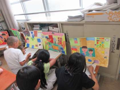 3年生 図画工作科 お話の絵の鑑賞会をしました。