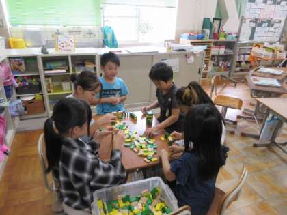 9月の終わりから今月にかけて、なかよし学級に、5年生が5〜6人ずつ給食を食べに来ています。食べている間は、クイズ大会等で楽しみ、早く食べ終わった子ども達は、一緒に遊んでもいいことにしています。今日は、ドミノや折り紙で遊んでいました。