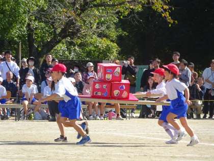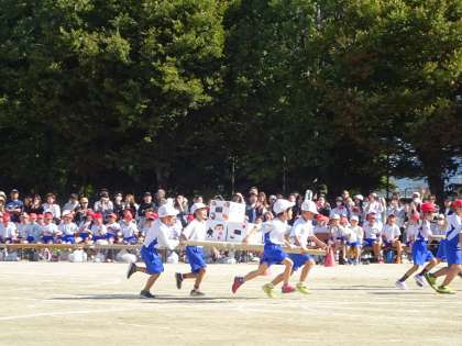運動会 1・2年生ペア種目 「かつぐんジャー おみこし大作戦」