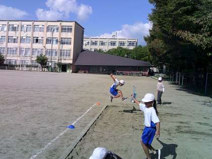 運動会も無事に終わり、体育の学習では、走り幅跳びをしています。