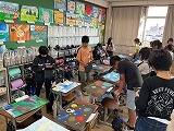 友だちの作品を見て「すごい!」「よく考えたなぁ!」「ぼかしの技法を使ったのかー!」と、興味津々な様子でした! 同じ写真でも、そこから想像して広げる世界は人によって違い、それぞれの個性が出て、とても素敵な作品になりました!