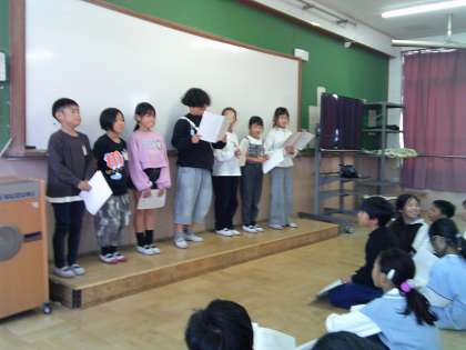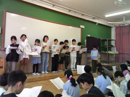 身振り手振りの仕方も同じグループ同士でアイデアを出し合いました。