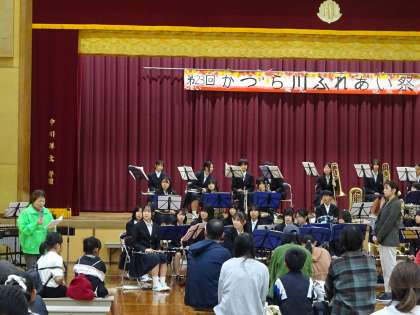 桂川中学校の吹奏楽部による、すてきなオープニング演奏でふれあい祭が始まりました。吹奏楽部の演奏ではアンコールが起き、さらに2曲も演奏していただきました。