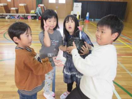 ダンス、ばくだんゲーム、桂小学校PTAの方々による劇仕立ての読み聞かせ、バルーンと、たくさん楽しみました。子ども達は、特にばくだんゲームが楽しかったようです。