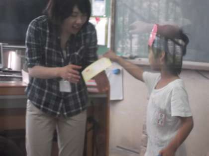 お葉書をなかよし学級の郵便屋さんが届けに行きました。