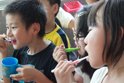 思ったよりも汚れていた自分たちの歯に驚く子どもたち。