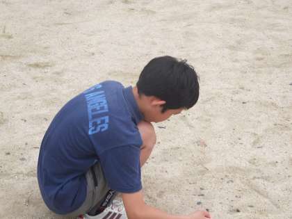 子どもたちは,普段の練習同様,一生懸命石を拾っていました。