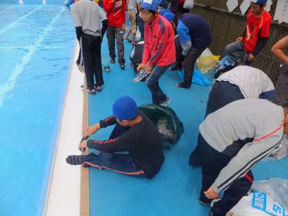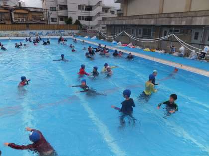 毎年,水の事故で尊い命がなくなっています。着衣泳は,そういった事故から自分やまわりの命を守るための学習です。