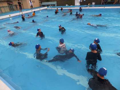 トラブルで服を着たまま急に水の中に入ってしまった時・一緒にいた家族や友達が入ってしまった時,どんな風に行動すればいいのか?また,服を着たまま水に入るというのは,どれほど大変なことなのかを着衣泳を通して学びました。
