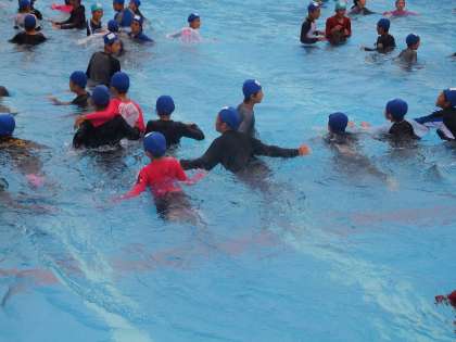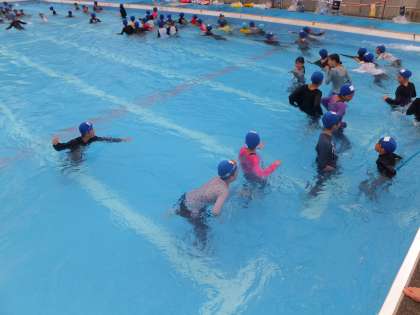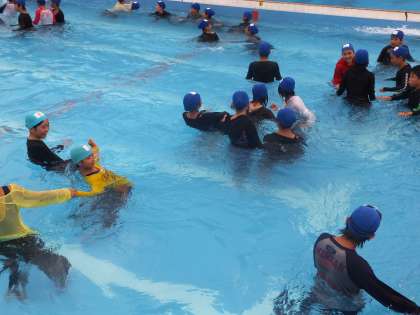 また,流れの中で止まってみる学習もしました。普段は簡単でも,着衣と流れがあるととても難しかったようです。
