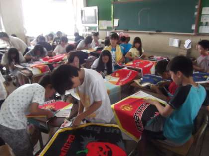 自分たちが選んだお気に入りのデザインのエプロンを作っています。今日は外わくにそって切りました。出来上がりがとても楽しみです。家でも自分が作ったエプロンをつけていっぱいお手伝いをしてくれると思います・・・?