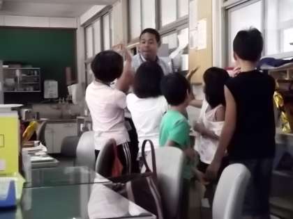 朝のあいさつに職員室へ行くと,今日から来られたアーメッド先生が・・・子どもたちは先生に寄っていき,「ハロー!」とあいさつを交わしながら大喜びでした。