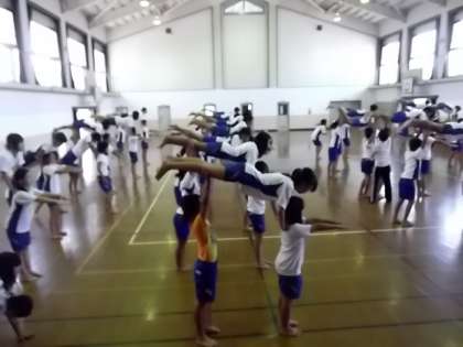 今は体育館で少しずつ仕上げています。技の出来栄えもさることながら,心がまえも素晴らしい6年生・・・真剣なまなざしで,感動してもらえる演技をめざしています。