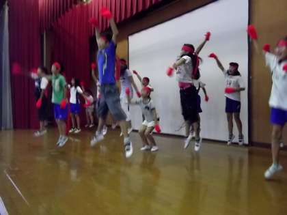 休み時間には,各色が体育館に集まって応援練習をしています。応援係がしっかりリードしてまとまってきました。