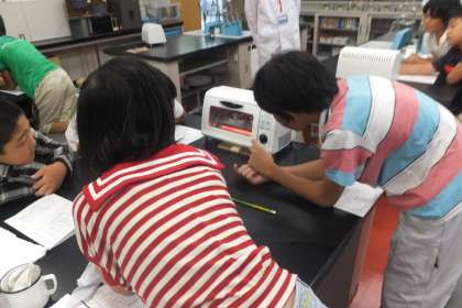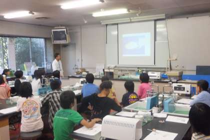 1組の実験の様子です。「ここにもプラスチック!」というテーマで,身の回りにあるプラスチックのもつ様々な性質を実験を通して学習しました。