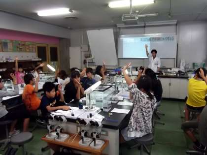 2組の実験の様子です。テーマは,「生きてるんだスジエビだって」です。