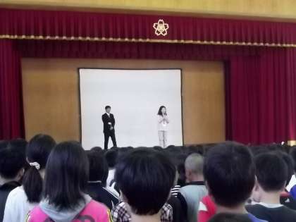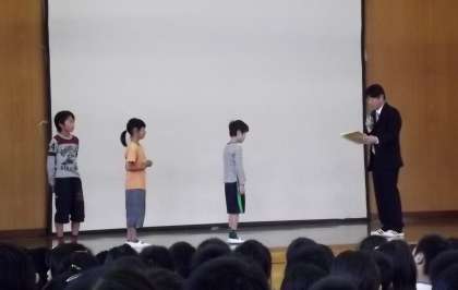 本日,後期始業式がありました。まず,新しく着任された中原玲子先生のご紹介があり,その後,昨日行われた陸上記録会で入賞した4名の表彰・3名の絵画表彰がありました。