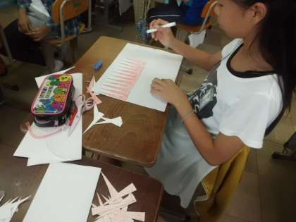 実際に円を切って,貼りなおすことで「半径×半径×円周率」になることを確かめました。