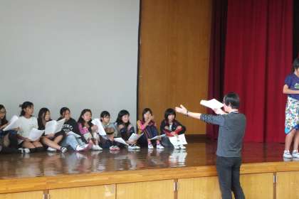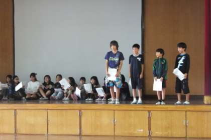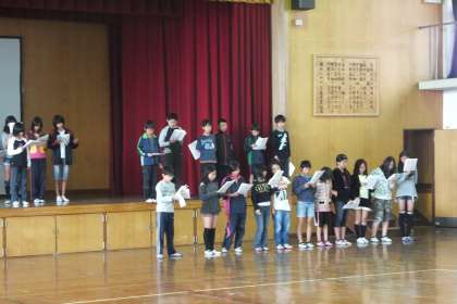 声を遠くにとばすことを目標に,はっきりとした声で読みました。