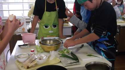 6年1組と交流の調理実習をしました。
