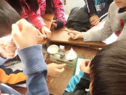 上皿てんびんをつかって比べました。