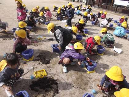 今日は,アサガオを育てた植木鉢の土をいったん外に出し,